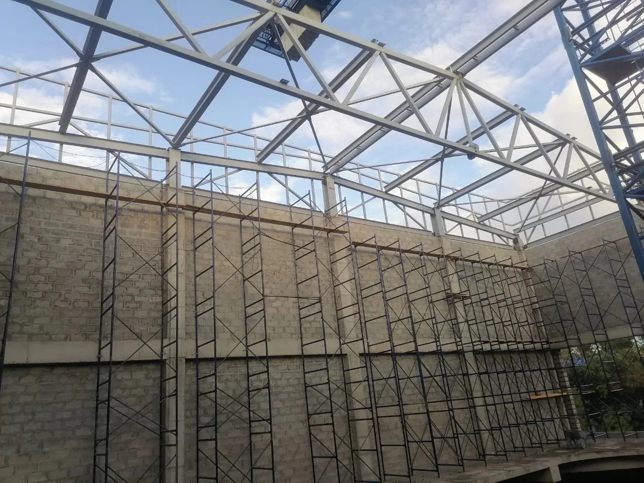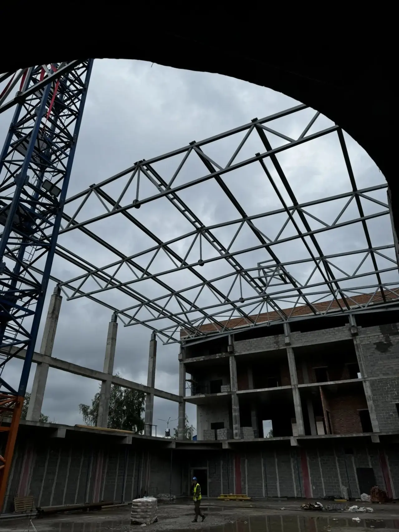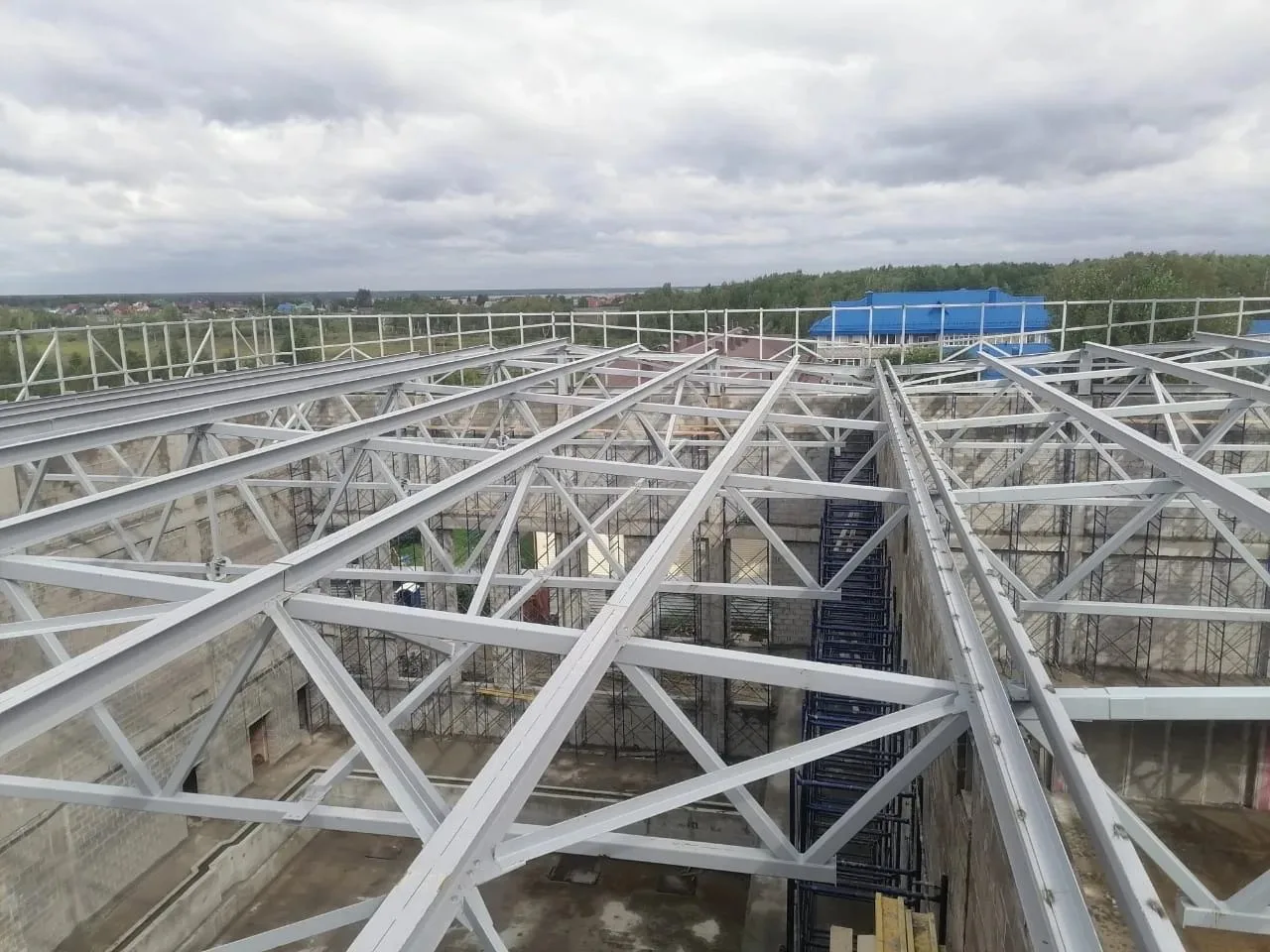 Главная › Ангары из металлоконструкций в Тюмени: наши реализованные проекты | Строительство под ключ › Кровля бассейна Олимпия п. Боровский Тюменский район