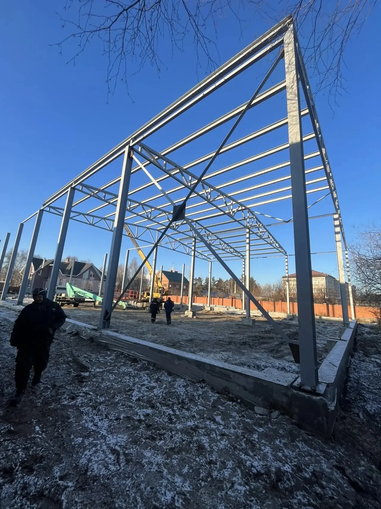 Главная › Ангары из металлоконструкций в Тюмени: наши реализованные проекты | Строительство под ключ › Спортивный комплекс под крытый пляжный волейбол п. Боровский Тюменский район
