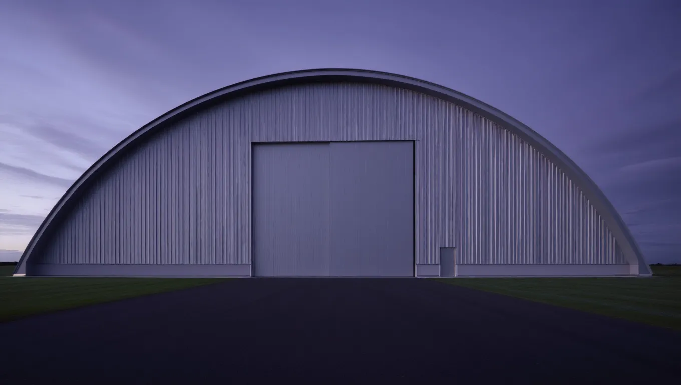 В Тюмени ангар проектируется с учётом: среднегодовых температур от –25°C до +35°C, ветровых нагрузок до 32 м/с и повышенной влажности. Угол наклона арки — 35°, что обеспечивает самостоятельный сход снега. Ворота и подъездные пути ориентированы под транспортные потоки Тюмени, ускоряя погрузку и разгрузку. Все материалы — негорючие (класс НГ), соответствуют нормам пожарной, санитарной и экологической безопасности.